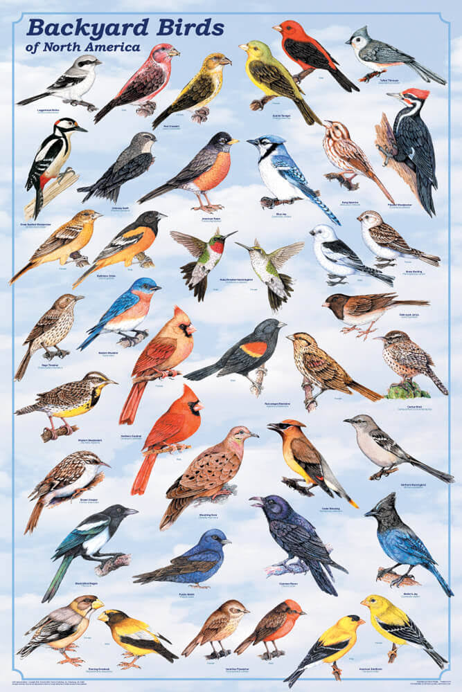 123Posters.com Backyard Birds Poster, 24x36
