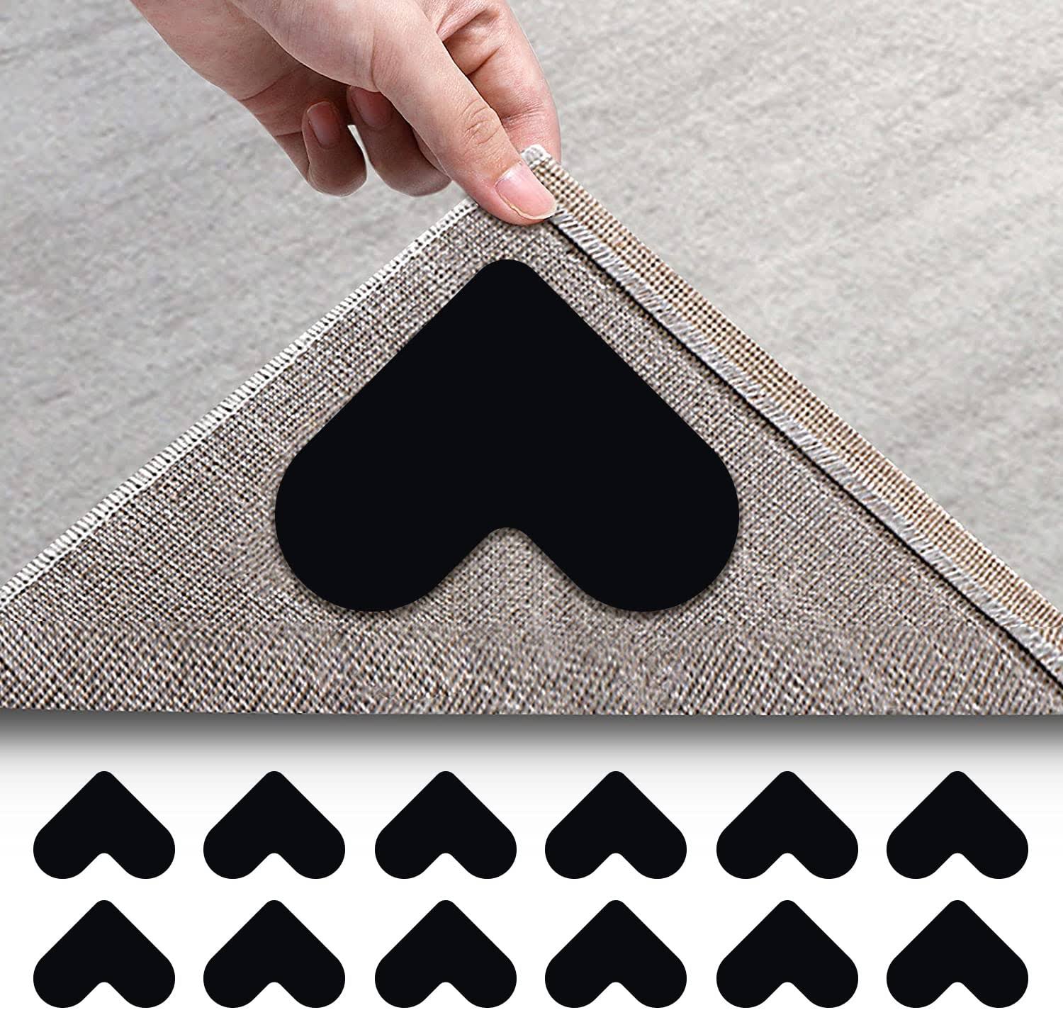 Kppex 12 Pack Rug Gripper Double Sided Non-Slip Rug Pads Rug Tape Stickers Washable Area Rug Pad Carpet Tape Corner Side Gripper for Hardwood Floors A