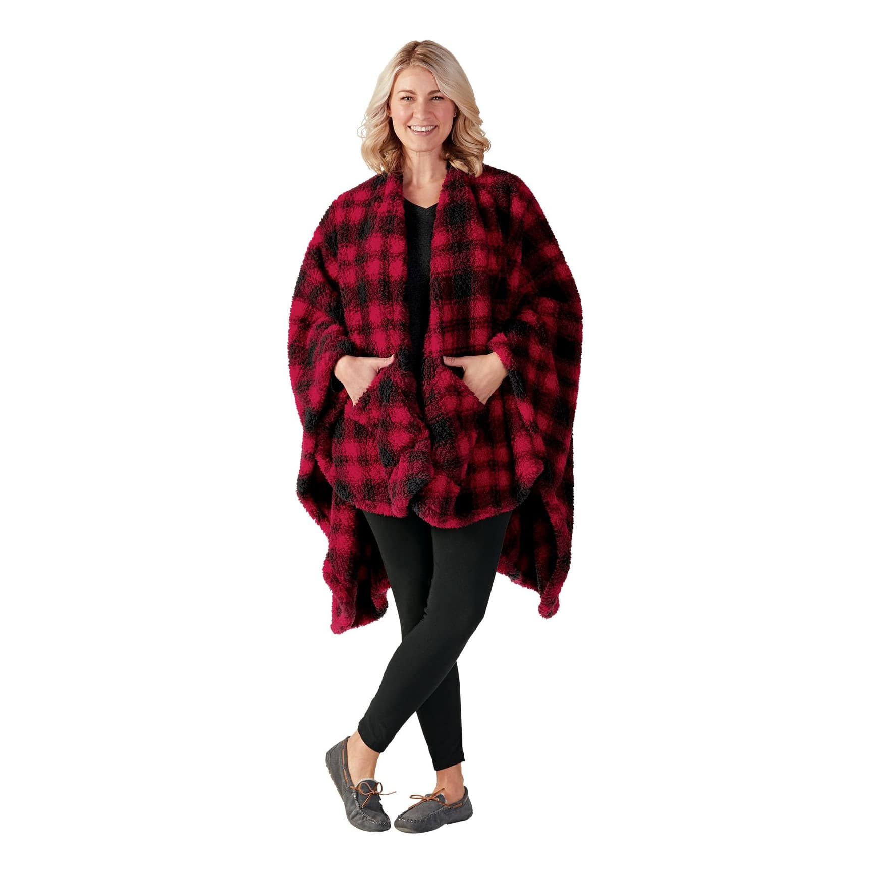 White River Home Double-Sided Sherpa Wearable Throw - Red/Black Plaid