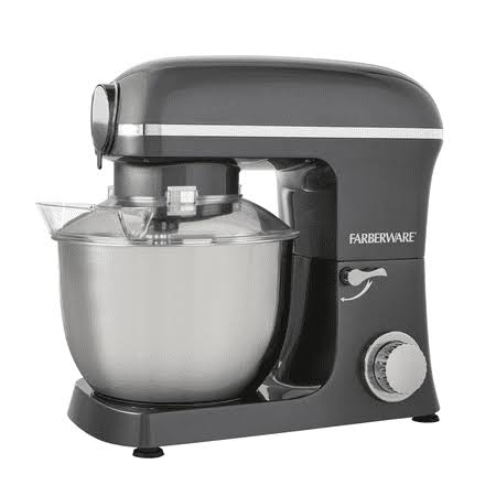 Farberware 5 Quart 600W 6-Speed Professional Stand Mixer with Beater, Dough Hook and Whisk-New, Gray