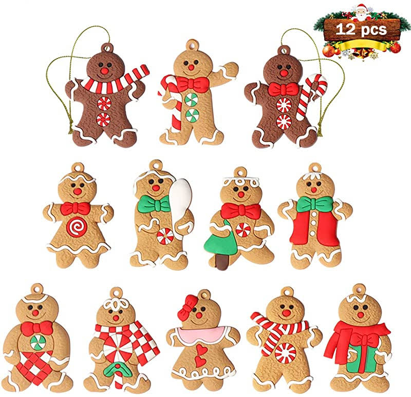 kockuu 12pcs Gingerbread Man Ornaments for Christmas Tree - Assorted Plastic Gingerbread Figurines Ornaments for Christmas Tree Hanging Decorations 3"