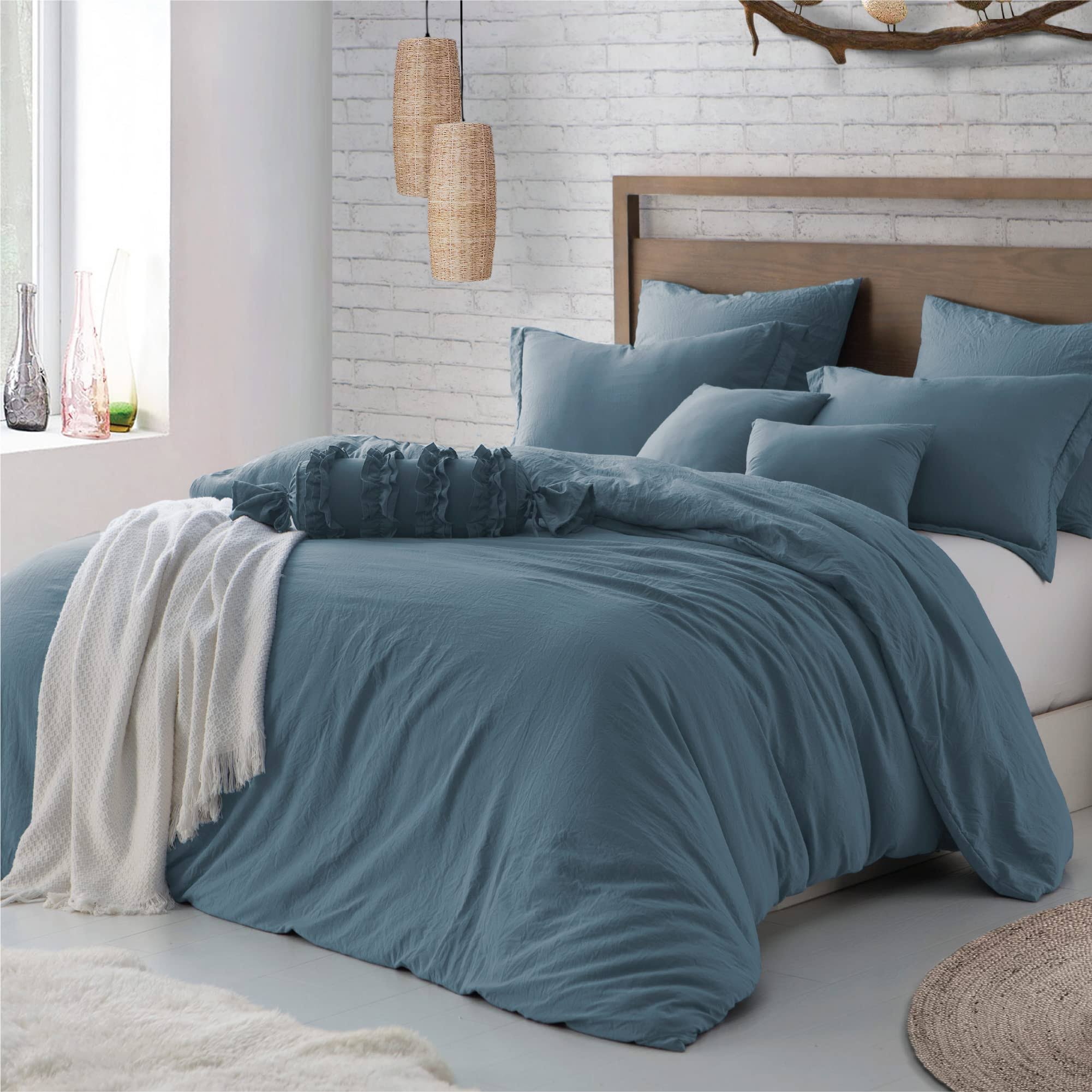 Swift Home Washed Crinkle Duvet Set Full/Queen Blue Dusk