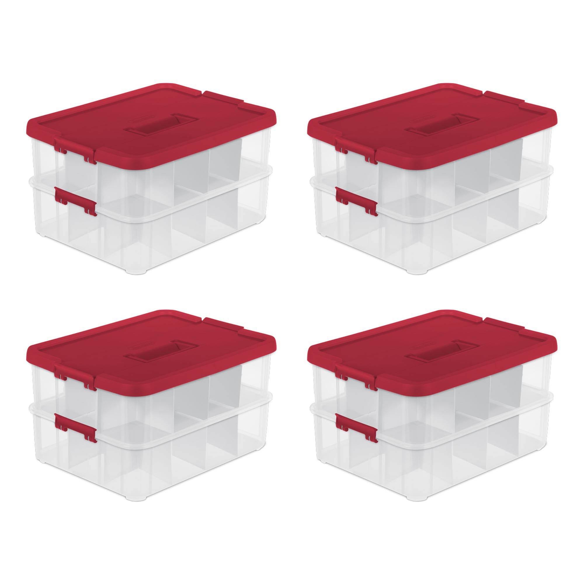 Sterilite 24 Compartment Stackable Christmas Ornament Storage Clear Box, 4 Pack