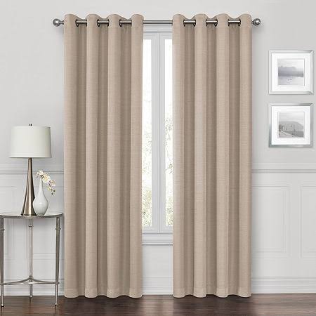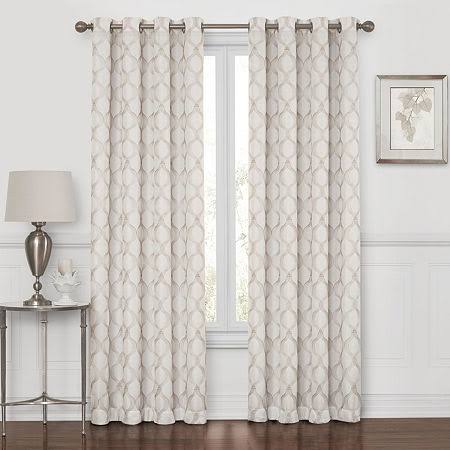 Maxx Blackout Prescott Embroidered 100% Blackout Grommet-Top Single Curtain Panel, One Size , Beige