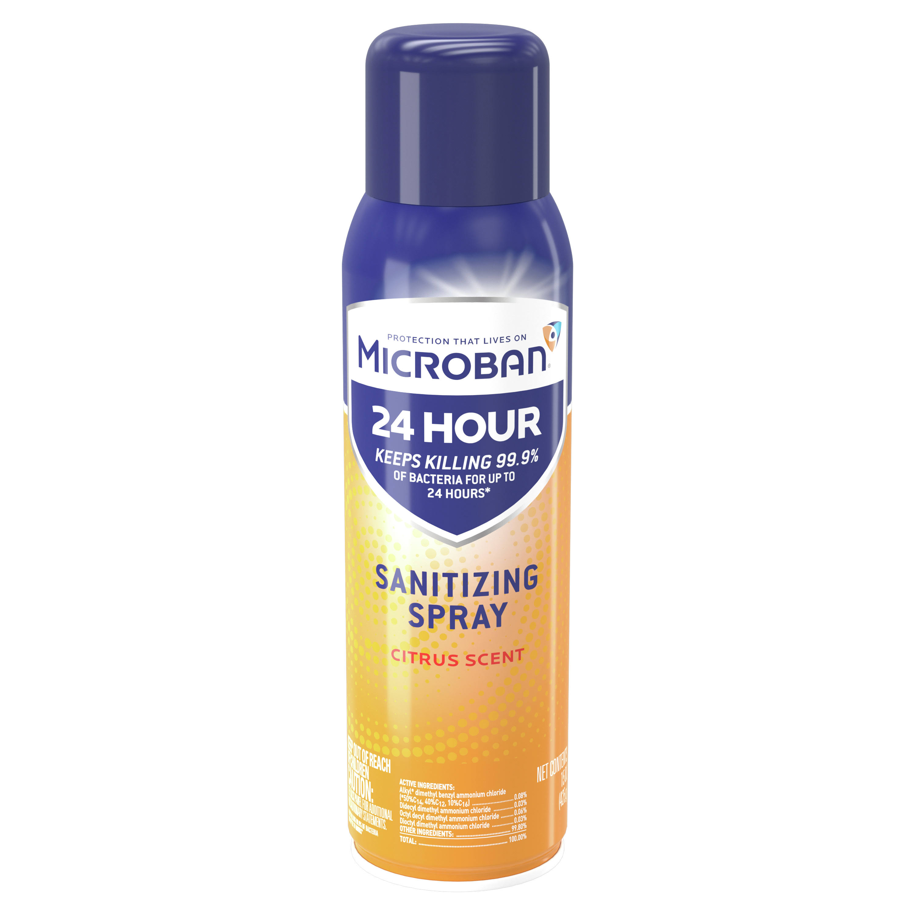 Microban 24-Hour Disinfecting Sanitizing Spray, Travel size, Citrus Scent, 2.8 oz Aerosol Spray, 4/Pack