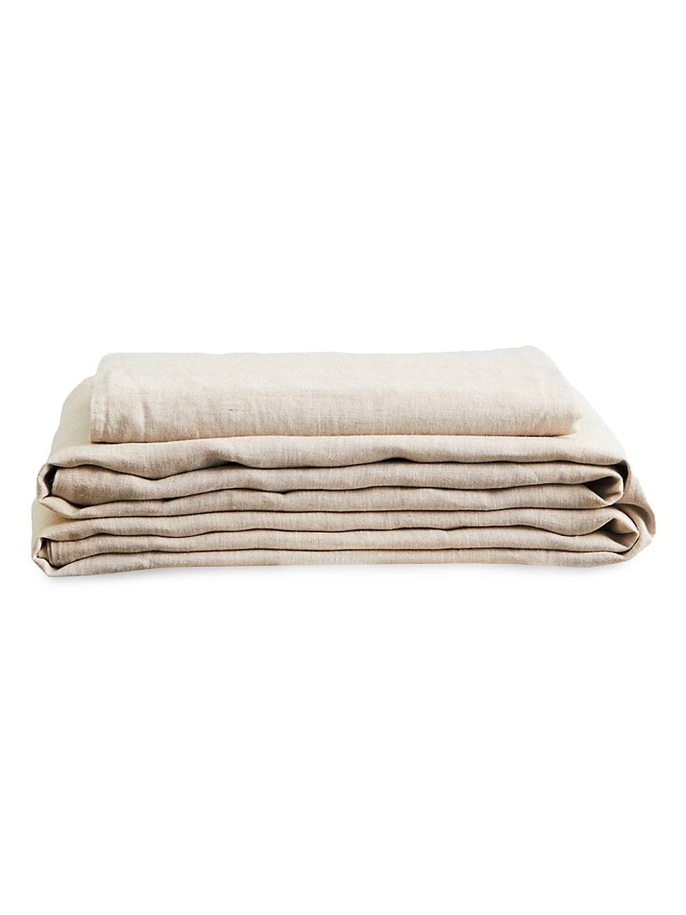 Bed Threads French Flax Linen Fitted Sheet - Oatmeal - Size XL Twin