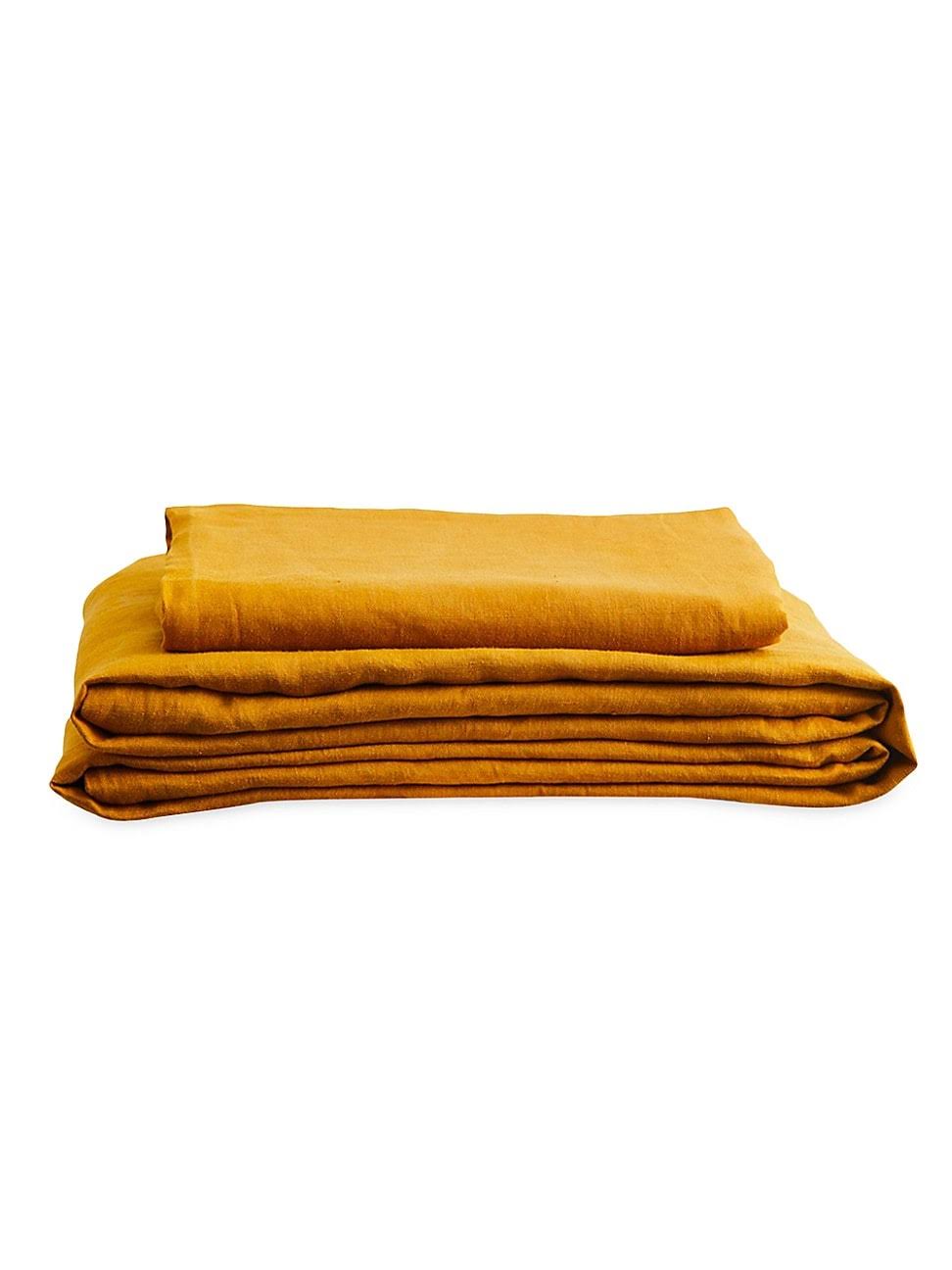 Bed Threads French Flax Linen Flat Sheet - Turmeric - Size King