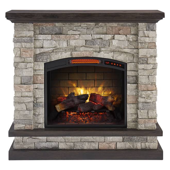 Allen + Roth 43.5-in W Stacked Faux Sandstone with Coffee Oak Infrared Quartz Electric Fireplace in Brown | 2315FM-23-931