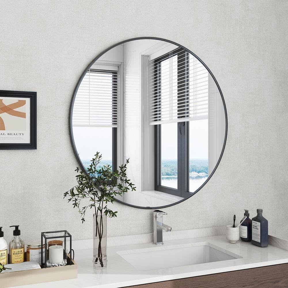 XRAMFY 24 in. W x 24 in. H Round Aluminum Alloy Framed Black Wall Mirror