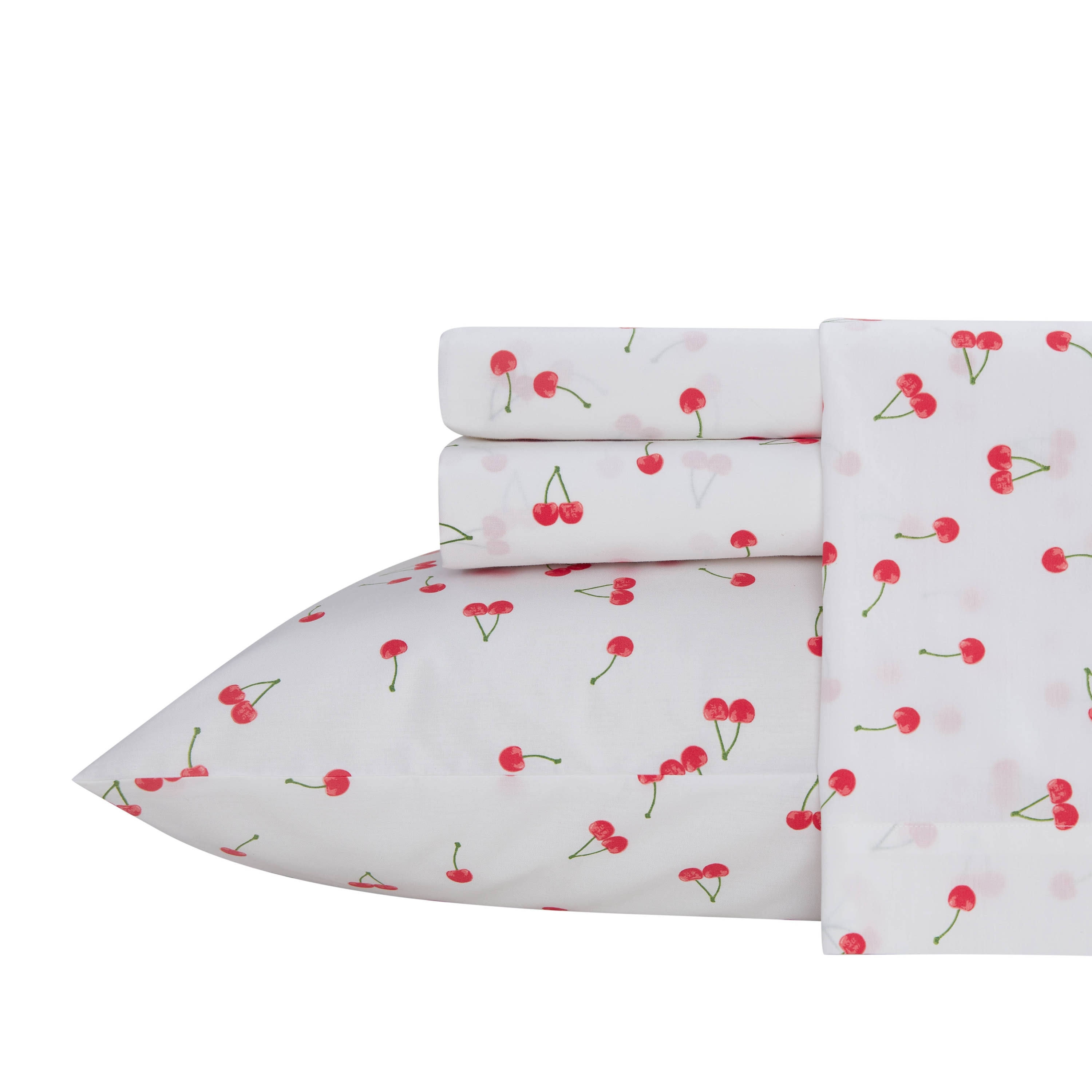 Poppy & Fritz Cherries 100% Cotton Percale- Sheet Set Red- Twin XL