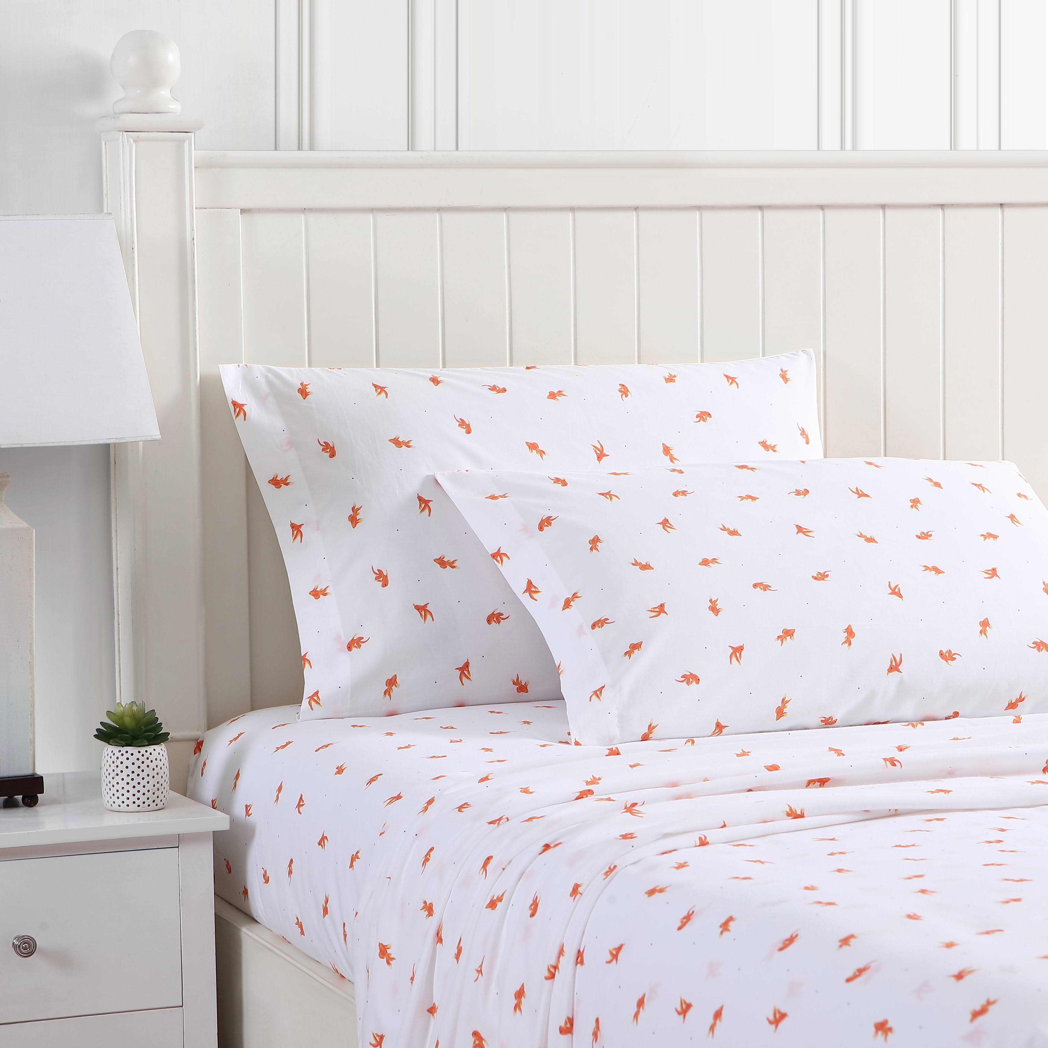 Poppy & Fritz Goldfish Printed Cotton Percale Sheet Set - Queen Coral