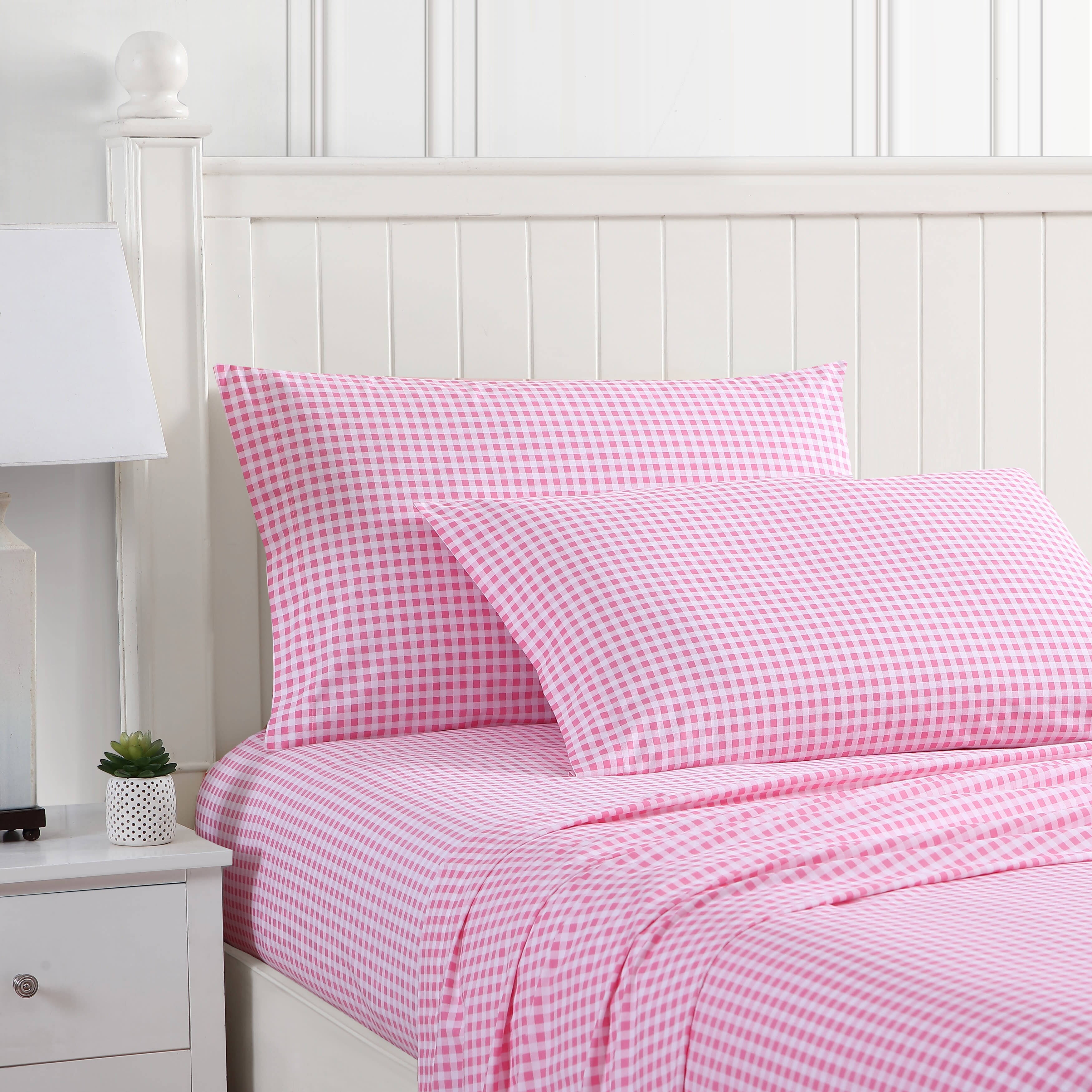 Poppy & Fritz Gingham Plaid Printed Cotton Percale Sheet Set - Twin Pink