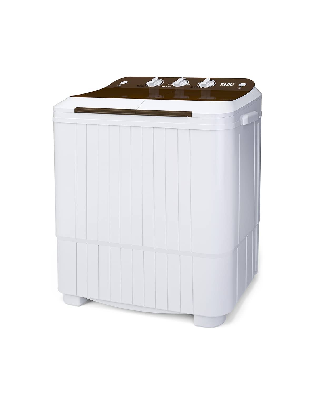 Tabu Portable Washing Machine, Mini Washer, 16.5lbs Compact Twin Tub Wash Spin Combo for Apartment, Dorms, RVs, Camping and More, White Brown