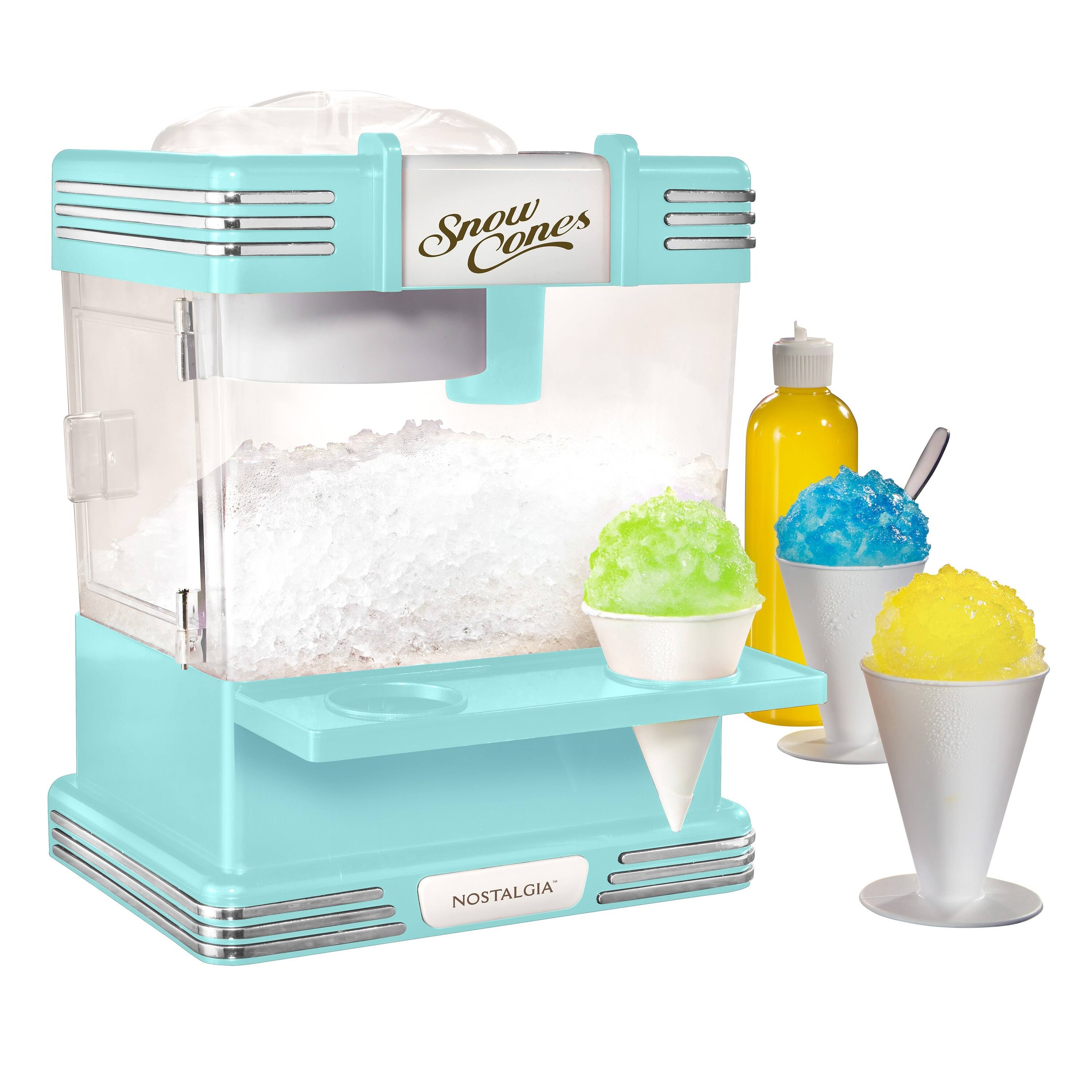 Nostalgia Nrscm602aq6a Retro Countertop Snow Cone Maker Makes 20 Icy Treats, Includes 2 Reusable Plastic Cups & Ice Scoop, Aqua, Blue