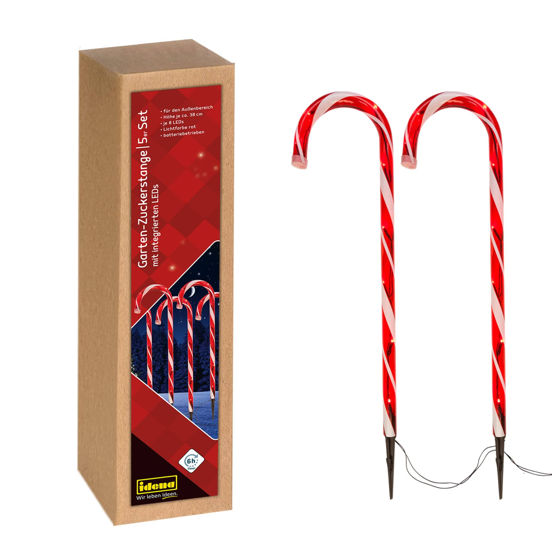 Idena 31348 LED Candy Canes with 40 LEDs in Red/White, 5 Light Sticks for The Garden, with Timer Function, Battery Operated, Includes Ground Spike,
