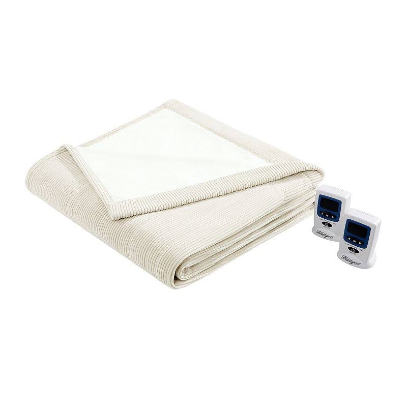 Beautyrest Heated Ribbed Microfleece Blanket, Ivory, Queen