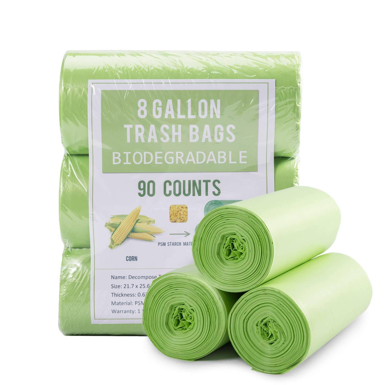Jaoul Biodegradable Medium Trash Bags 8 Gallon, 0.67 Mil Extra Strong Garbage Bags for 30 Liter Trash Can for Home Office Car Kitchen, Green, 90