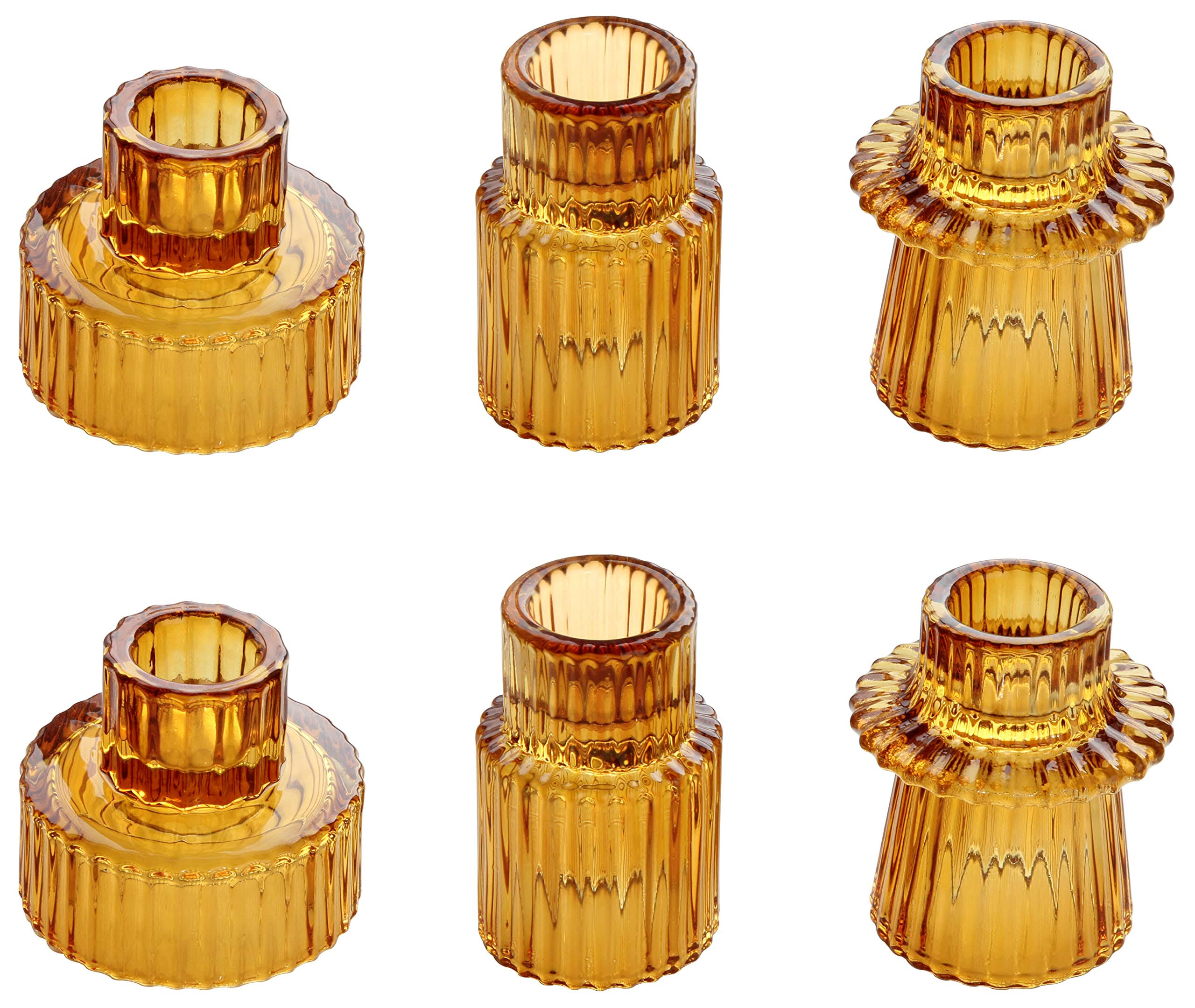 Vixdonos Taper Glass Candlestick Holders Tealight Candle Holders for Table Centerpieces, Wedding Decor and Dinner Party (6 Pcs, Amber)