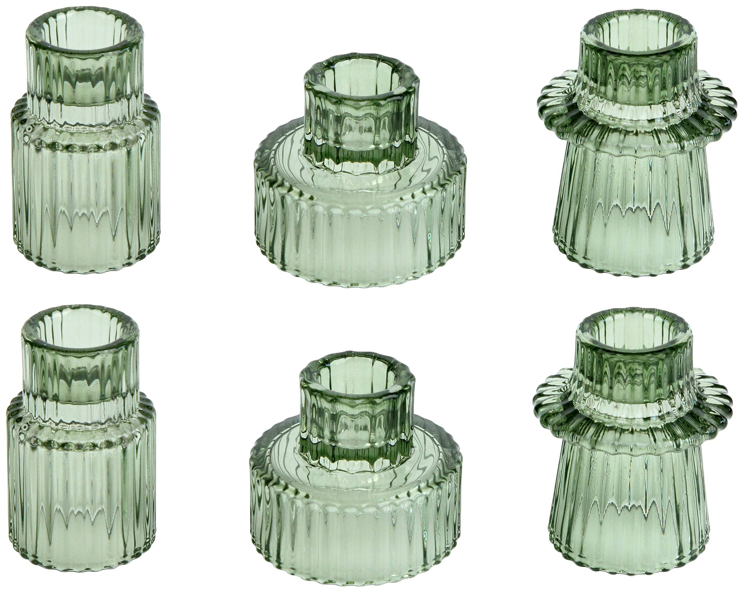 Vixdonos Taper Glass Candlestick Holders Tealight Candle Holders for Table Centerpieces, Wedding Decor and Dinner Party (6 Pcs, Green)