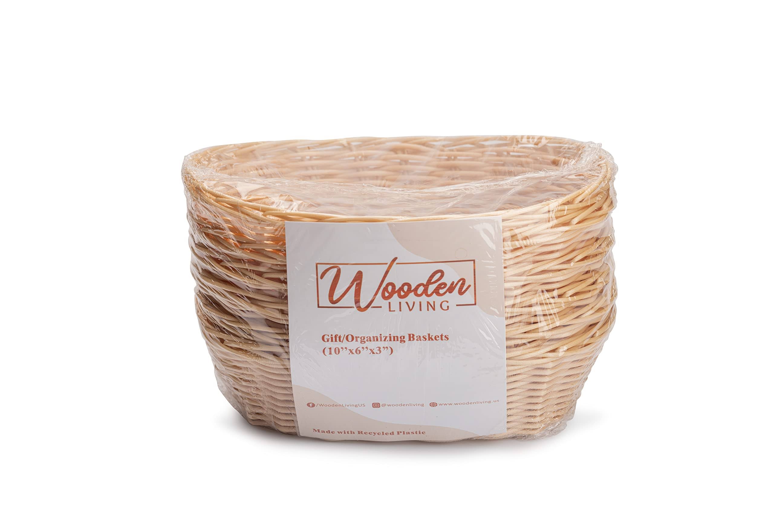 Baskets for Gifts Empty, Small Gift Basket | for Bread, Easter Fill, Montessori, Serving, Holiday/Christmas | Recycled Plastic Woven Wicker, Bulk