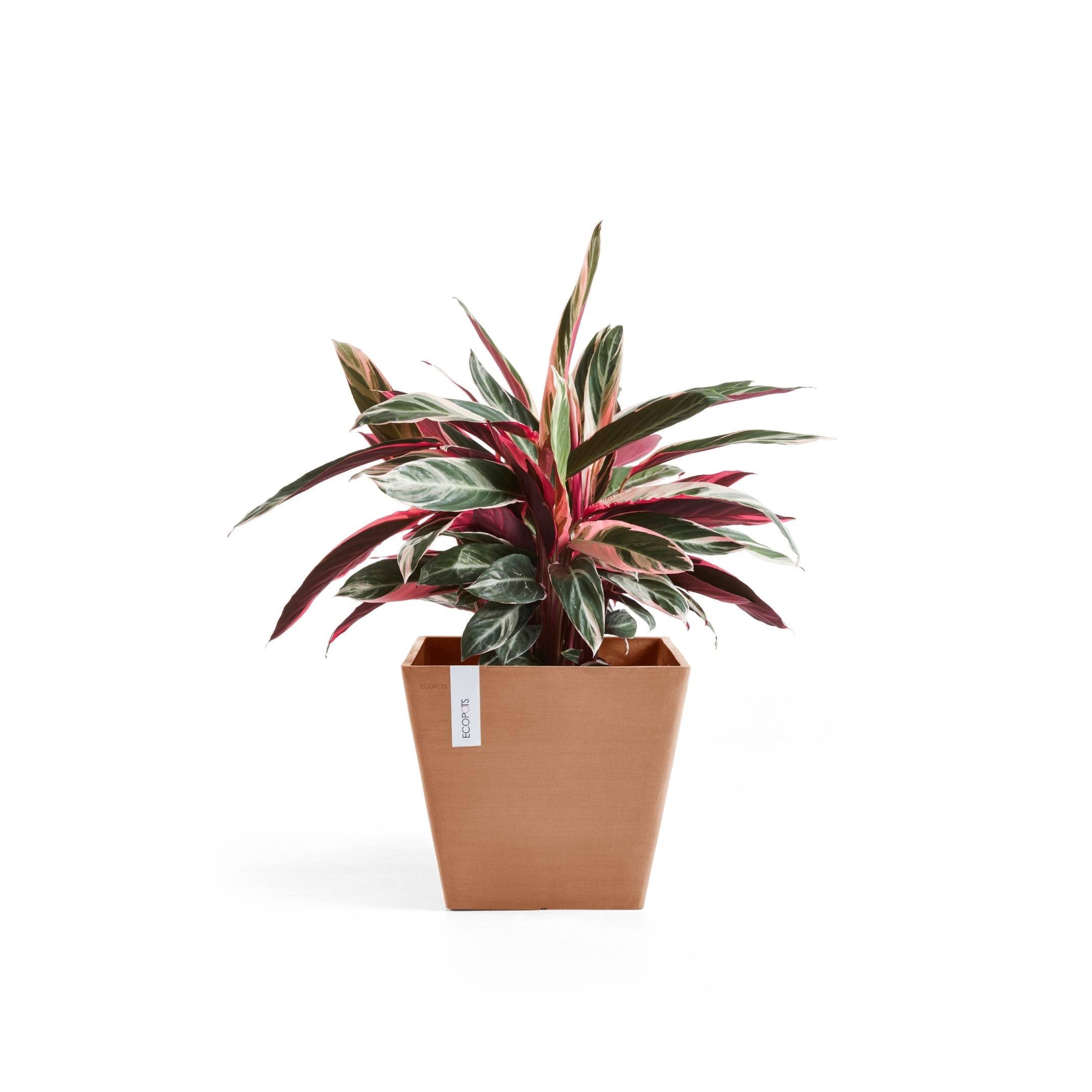 Ecopots Rotterdam Durable Indoor/Outdoor Modern Square Recycled Plastic Planter Flower Pot, Terracotta Color, 8"
