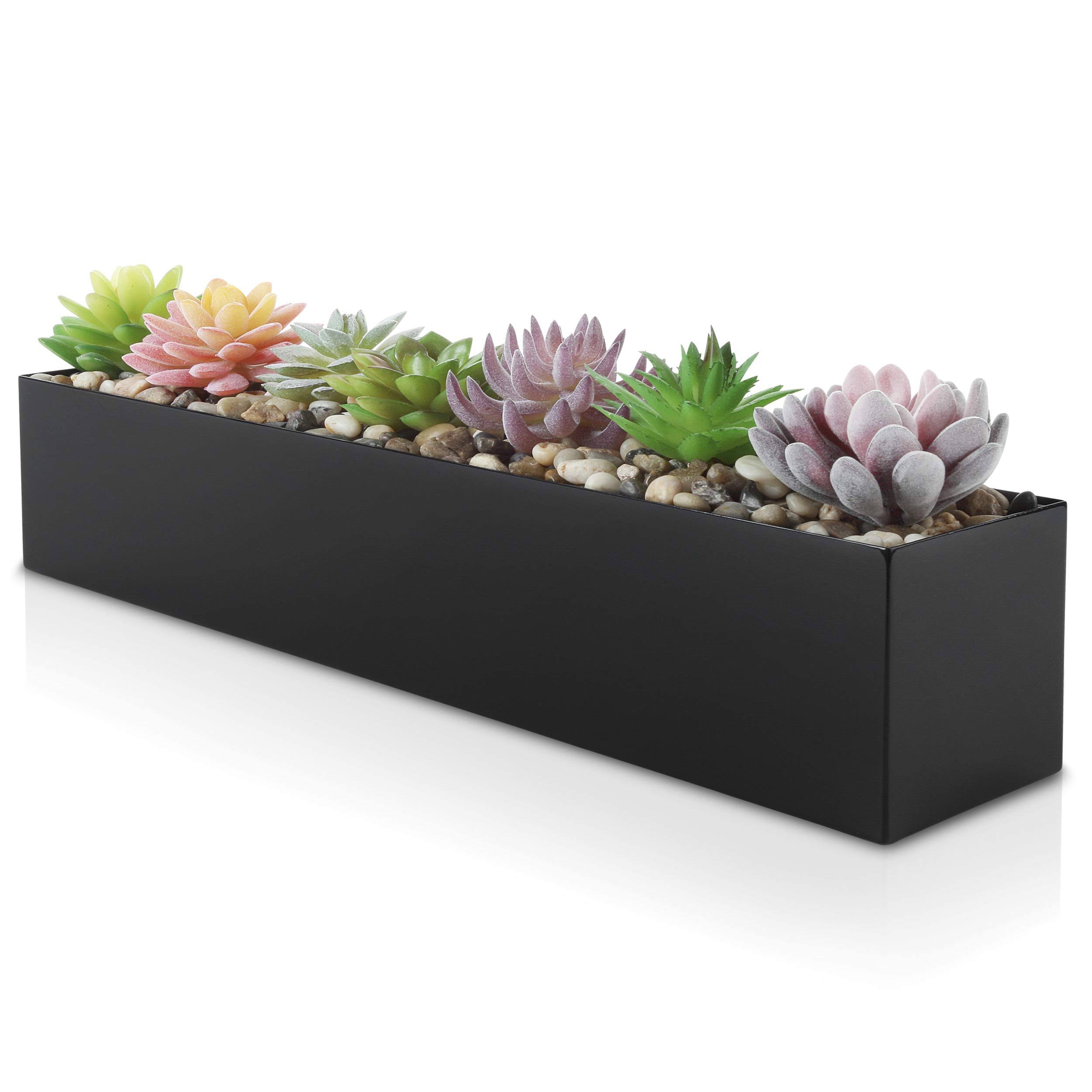 Modern Black Trough Rectangular Planter | 16�� Metal Window Planter Box for Succulent | Small Rectangle Planter for Desk or Windowsill Planter |