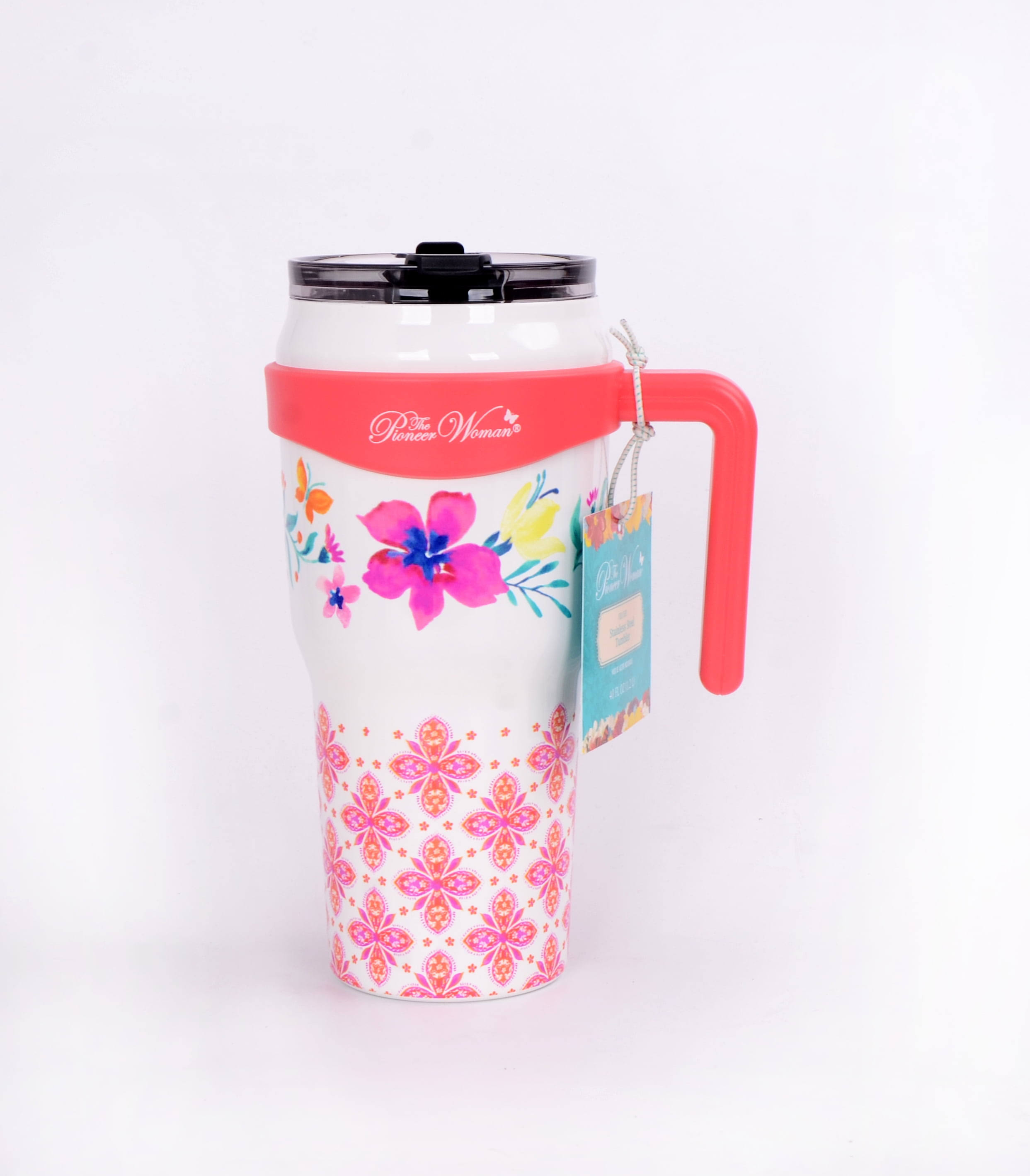 The Pioneer Woman 40 oz Brilliant Blooms Stainless Steel Tumbler, White