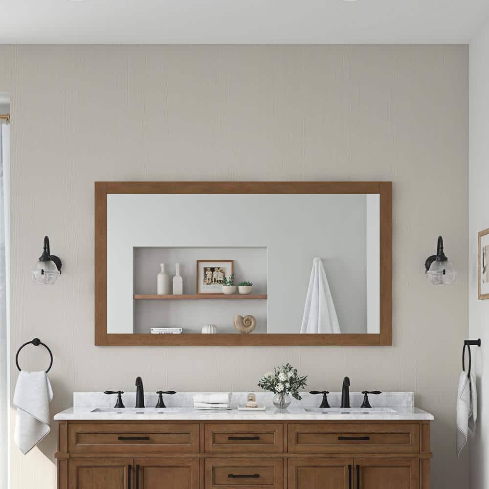 Caville 60 in. W x 32 in. H Rectangular Framed Wall Mount Bathroom Vanity Mirror in Almond Toffee