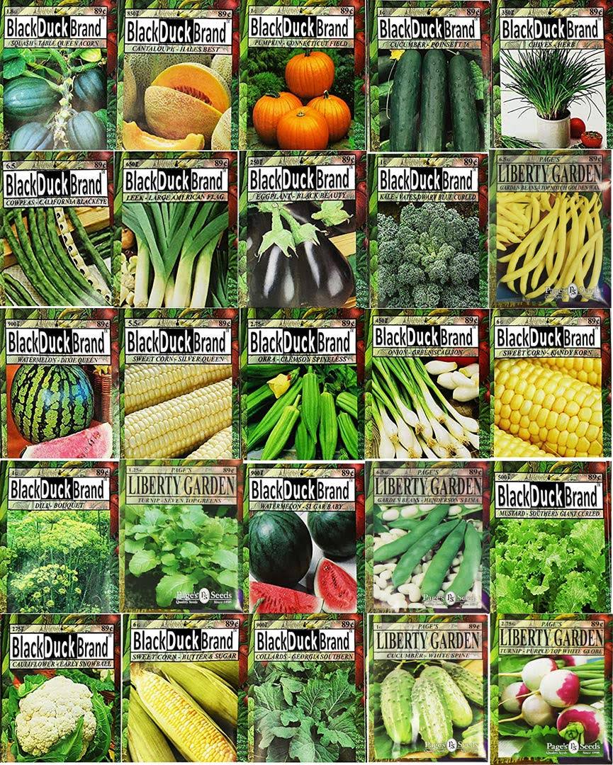 Set of 25 Premium Vegetable & Herb Seeds - 25 Deluxe Variety Premium Vegetable & Herb Garden 100% Non-GMO Heirloom