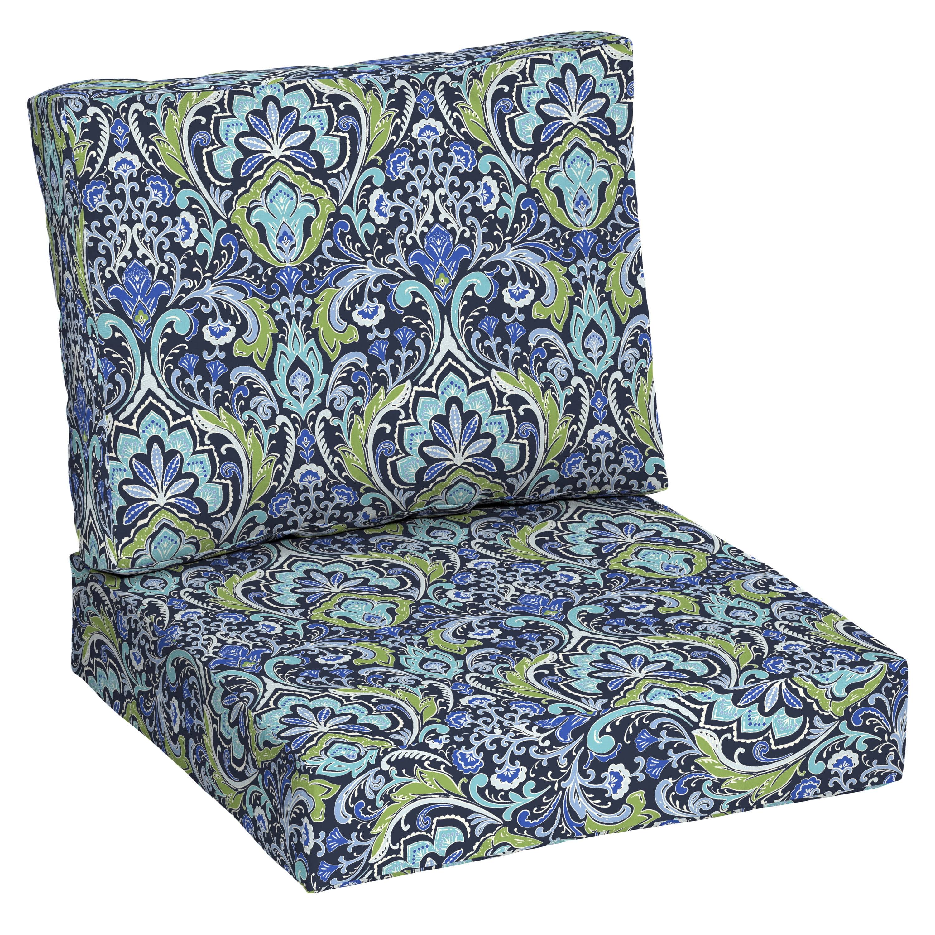Better Homes & Gardens 42 inch x 24 inch Blue Damask Outdoor 2-Piece Deep Seat Cushion, Size: 24 x 24