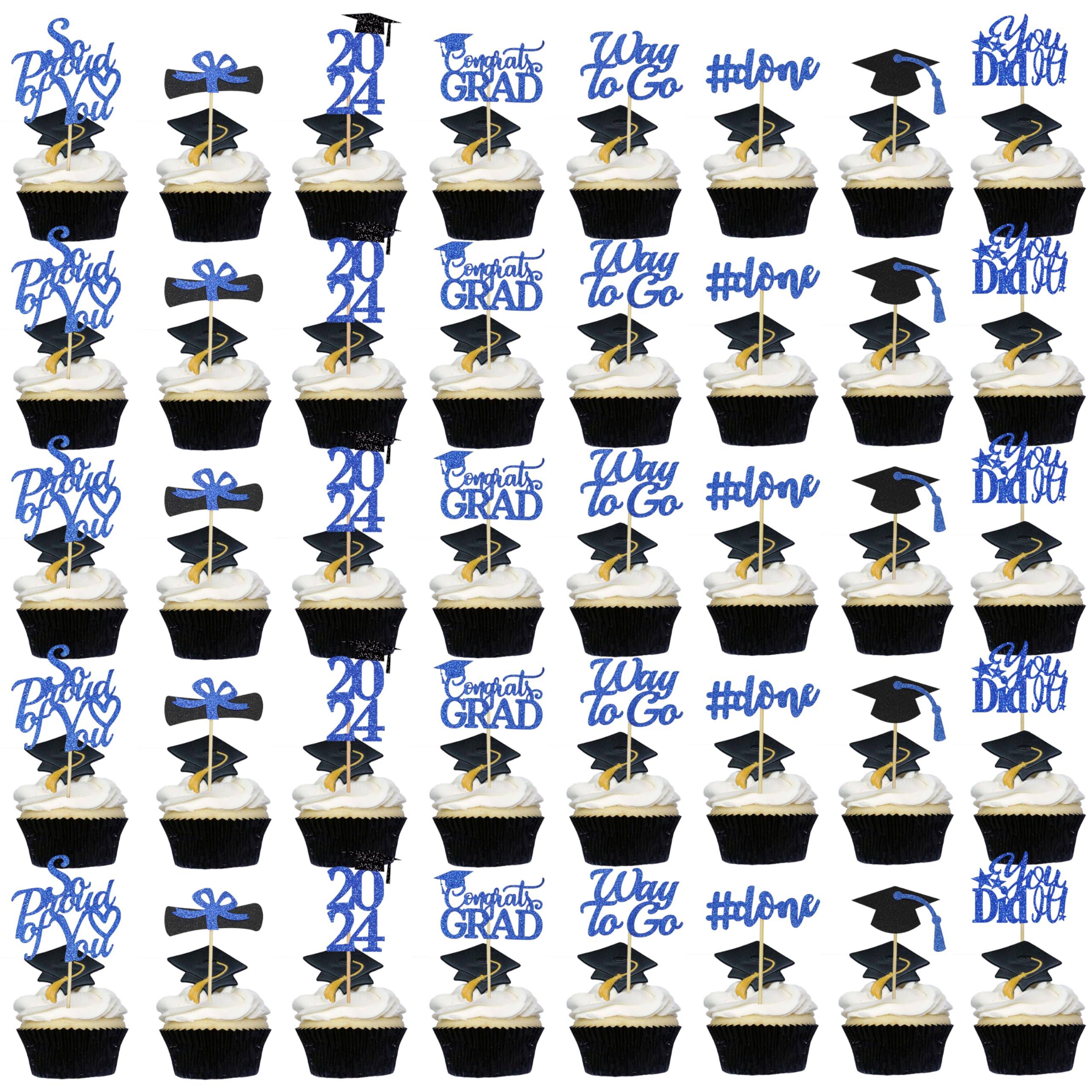 Graduation Cupcake Toppers 2022 Blue, Glitter Class of 2022 Cupcake Toppers Supplies, Class of 2022 Congrats Grad Cap Diploma Cupcake Picks for