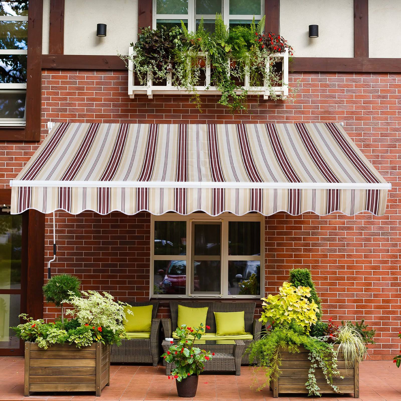Outsunny 10' x 8' Retractable Sun Shade Patio/Window Awning, White/Beige Stripe