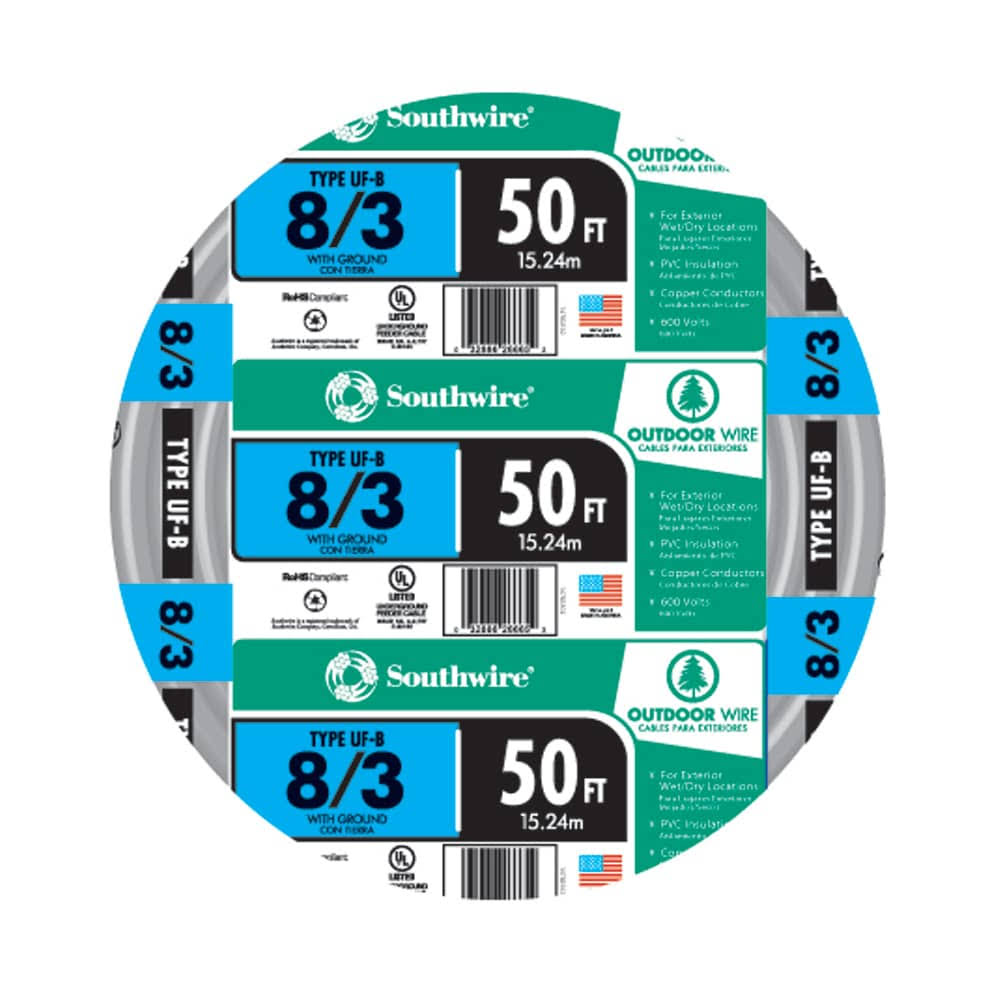 Southwire 50 ft. 8/3 Gray Stranded Cu UF-B W/G Wire