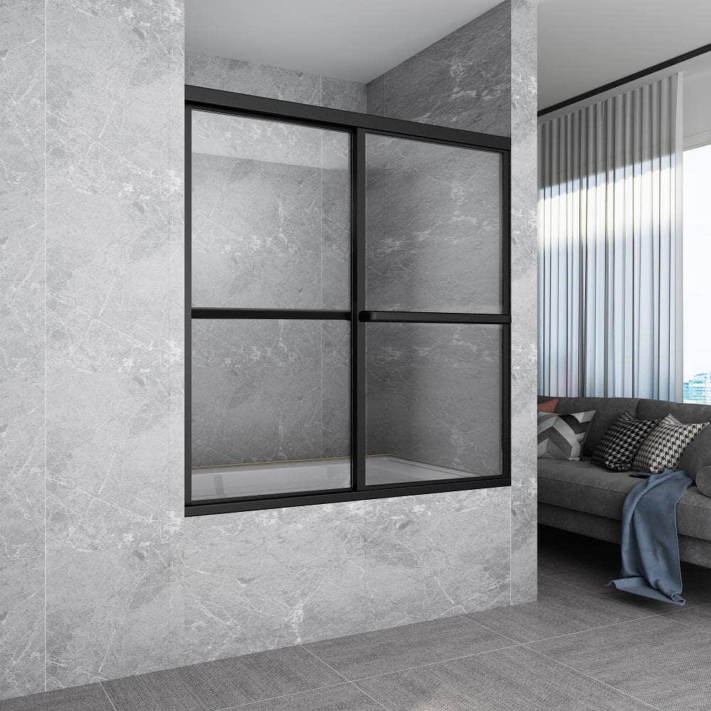 niveal Alvin 59 in. W x 56 in. H Sliding Framed Tub Door in Matte Black Finish