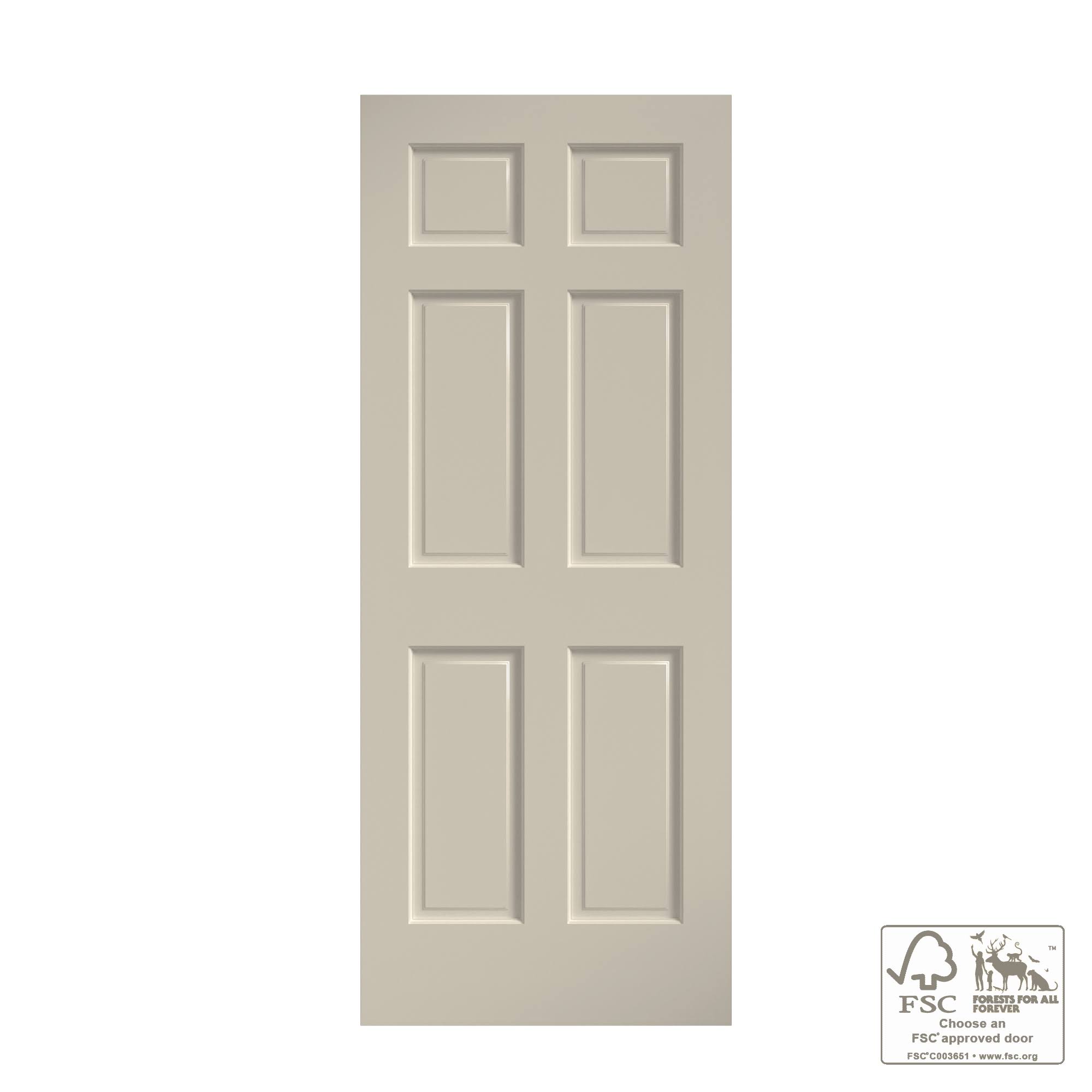 EightDoors 80 inch x 30 inch 6 Panel White Primed Solid Wood Core Door