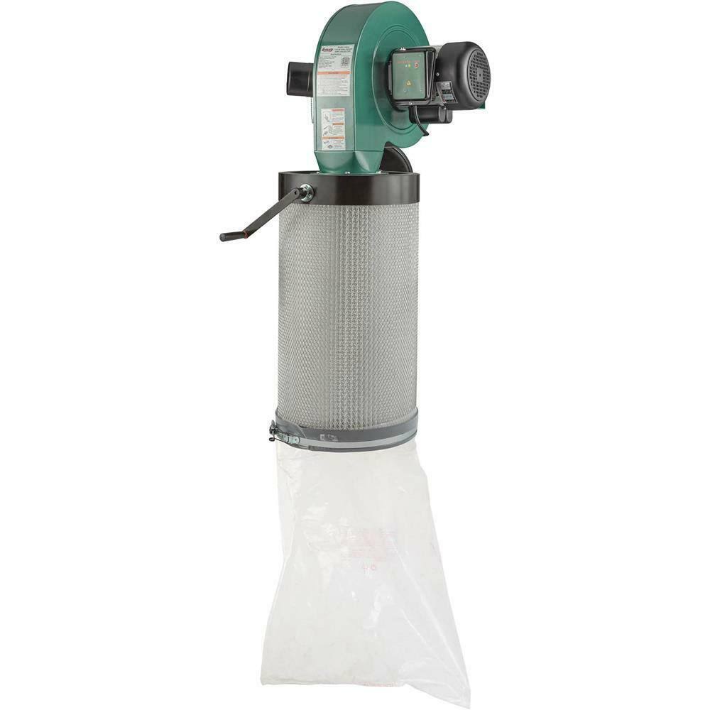 Grizzly 1-1/2 HP Wall-Mount Dust Collector with Canister Filter.