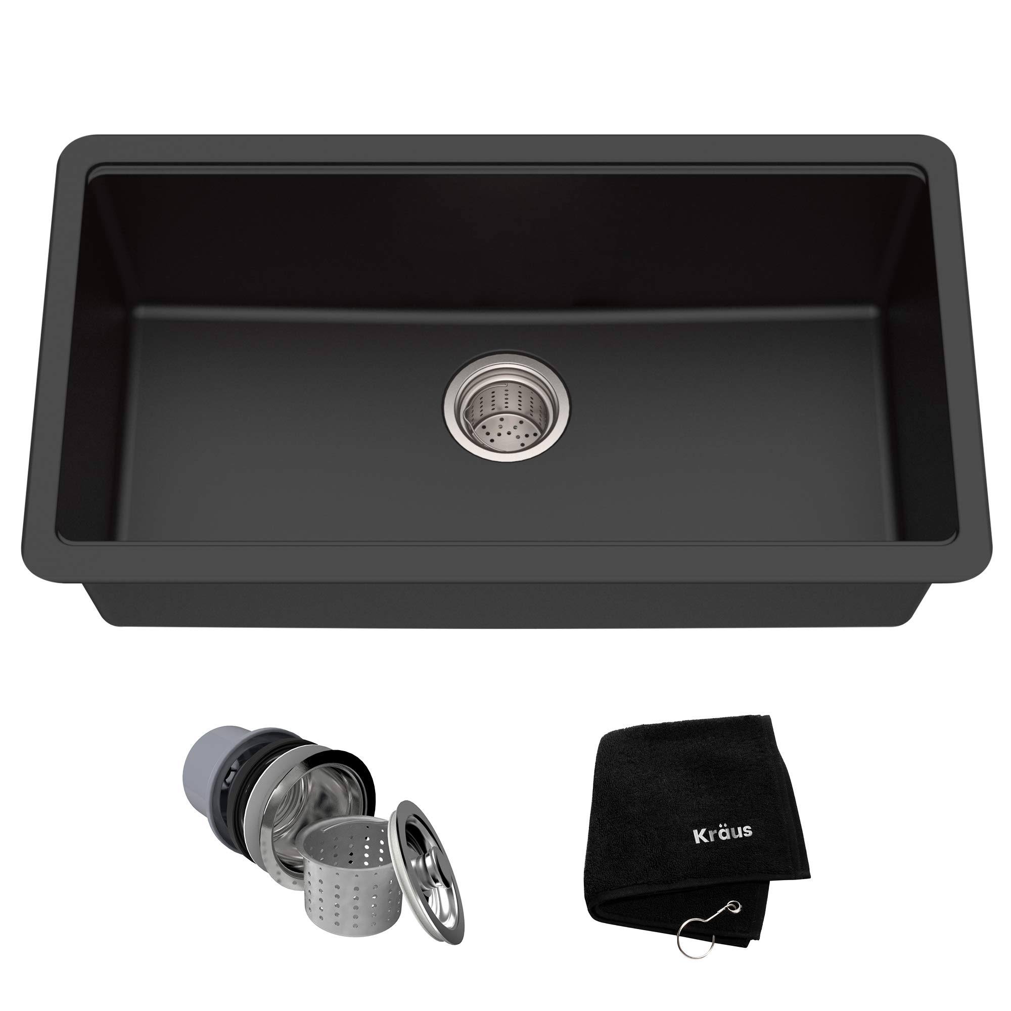 Kraus KGU-413B 31" Undermount Single Bowl Black Onyx Granite Kitchen Sink