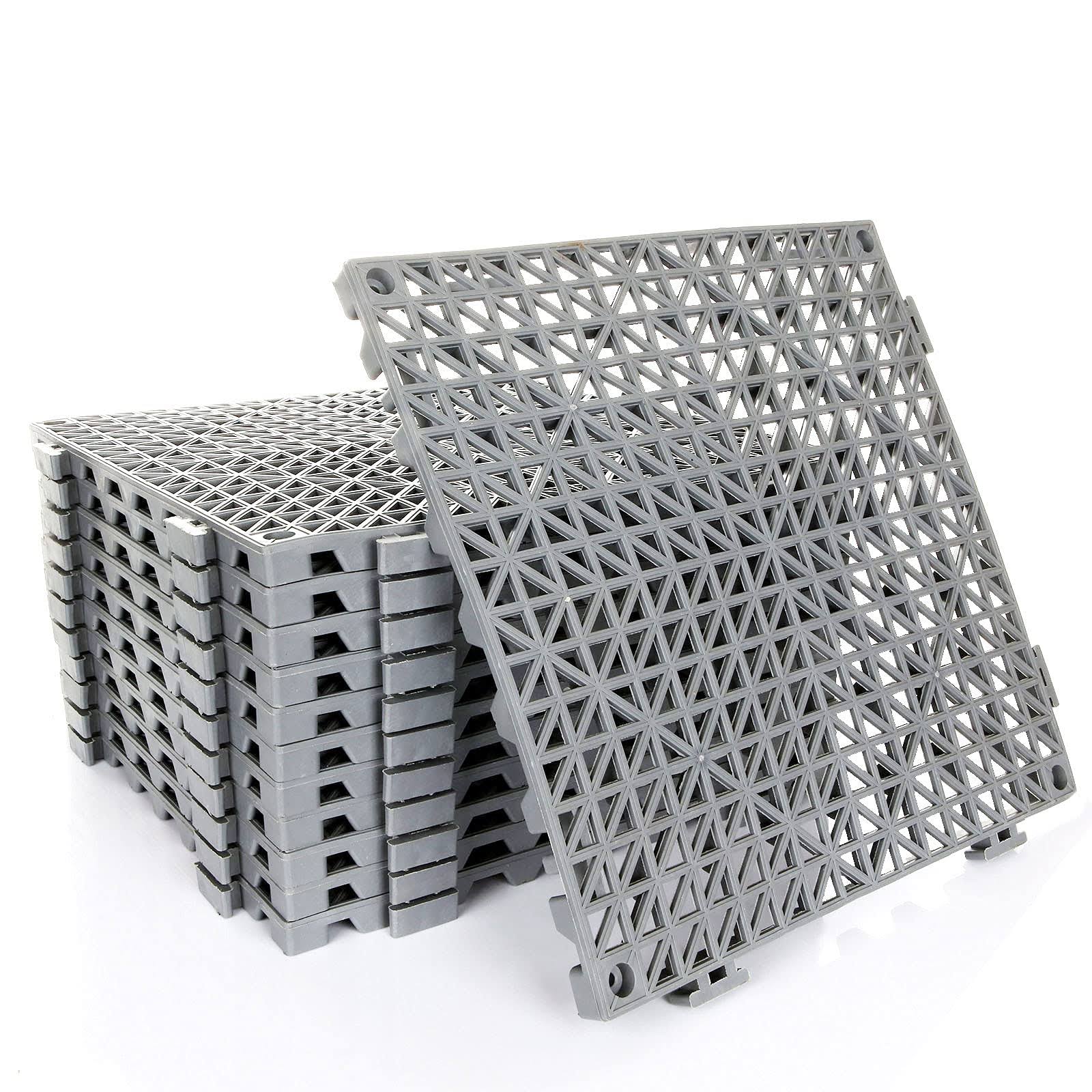 GLEEJON 12pcs Interlocking Soft PVC Flooring Tiles Mat, 12 x 12 inch No-Slip Rubber Splicing Pool Patio Rugged Mats for Floor, Modular Interlocking