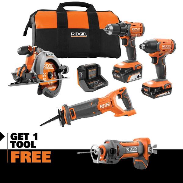18V Cordless 4-Tool Combo Kit with 4.0 Ah Battery. 2.0 Ah Battery. Charger. Bag and 18V Drywall Cut-Out Tool