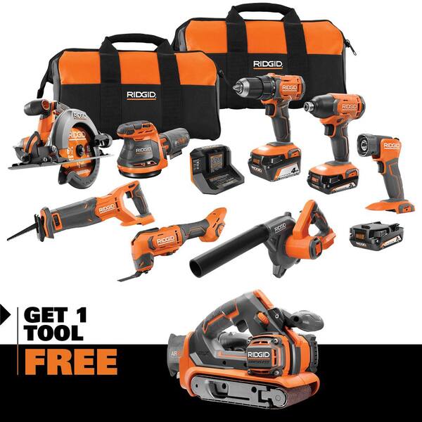 18V Cordless 8-Tool Combo Kit with (3) Batteries. Charger. and Bag with 18V Belt Sander