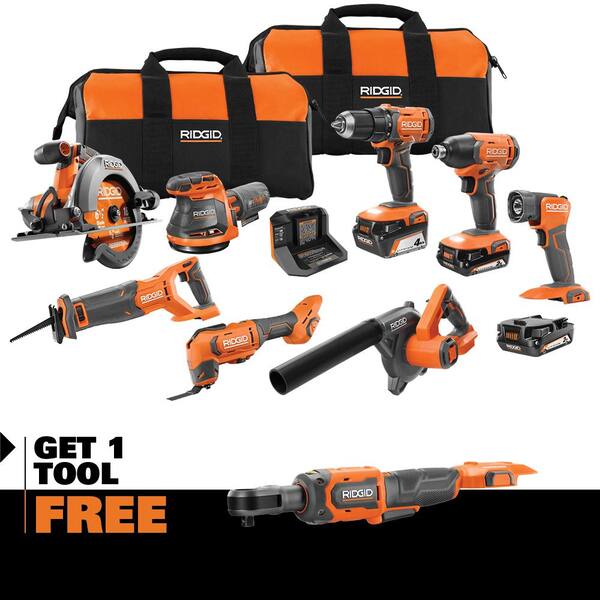 18V Cordless 8-Tool Combo Kit with (3) Batteries. Charger. and Bag with 18V 3/8 in. Ratchet