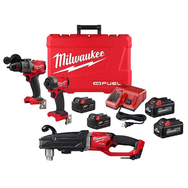 M18 FUEL 18-Volt Lithium-Ion Brushless Cordless Hammer Drill/Right Angle Drill/Impact Driver Combo Kit (3-Tool)
